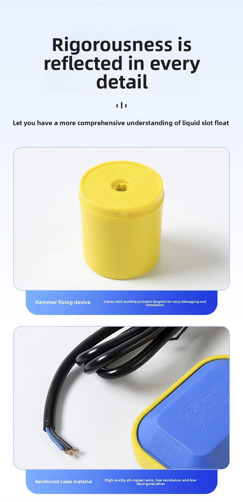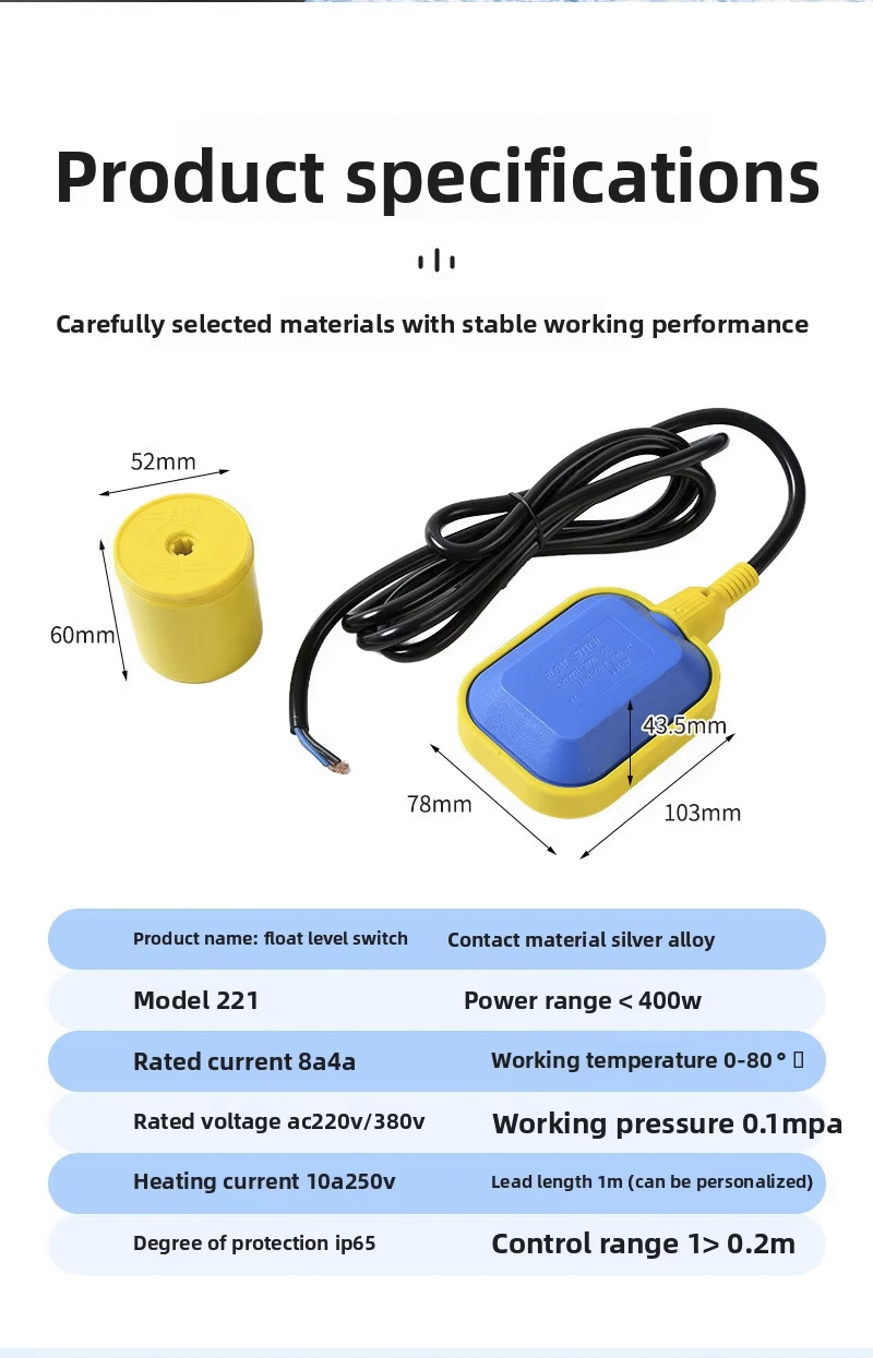 Tá dearadh ciorclach mór ag an lasc snámhphointe seo le grád cosanta 2m、3m、5m、10m, IP68, agus feidhmíonn sé ag teochtaí ó 0 ℃ go 80 ℃, Tacaíonn sé le raon leathan voltais 110V go 220V agus tá brú oibre láidir de ± 0.5Mpa.Tá an táirge inoiriúnaithe, inoiriúnaitheacht léasair nó in oiriúint do sheirbhísí OEM / OEM. le haghaidh feidhmchláir éagsúla.