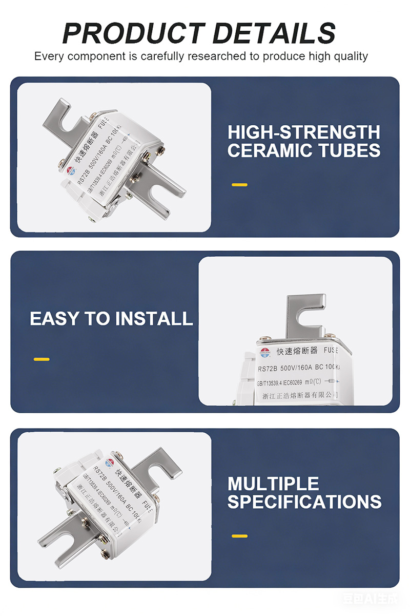 Is fiús tionsclaíoch ardfheidhmíochta é RS72B 500V 160A BC 100KA Fuse Links atá deartha go sonrach le haghaidh ardvoltais agus ardchosaint reatha. Tá RS72B 500V 160A BC 100KA Fuse Links déanta as ábhair ardchaighdeáin agus tá cumas briseadh den scoth aige. Is féidir leis uassruth gearrchiorcaid de 100KA a sheasamh, rud a choscann damáiste trealaimh go héifeachtach.