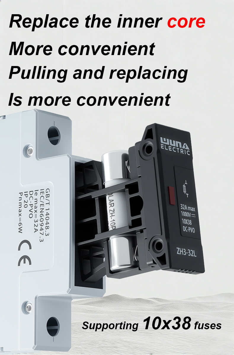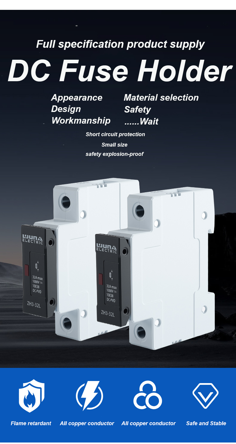 Tá Sealbhóir Fuse ZH32L DC 1000V de chealla fótavoltach deartha go sonrach le húsáid i gcórais fhótavoltach (PV), go príomha chun painéil ghréine a chosaint. Is é riocht briste na bpainéal gréine ná, cé go ndéantar an pacáiste cealla gréine lochtach a bhriseadh go héifeachtach, ní chuireann sé isteach ar oibriú gnáthphacáistí cealla gréine oibre eile. Is féidir leis an bhfiús Sealbhóir Fiús ZH32L DC 1000V an modúl PV agus a seoltóirí a chosaint go sábháilte ó bhagairt sruth ró-ualaithe droim ar ais, is cuma an bhfuil an soláthar cumhachta DC i mbaol. Leis an éileamh atá ag méadú ar phacáistí cealla gréine ard-chumhachta sa mhargadh, le cur chun cinn agus forbairt na gcóras fótavoltach agus teicneolaíocht feidhmithe giniúna cumhachta ceangailte le greille cumhachta gaoithe, tá úsáid fiúsanna DC ardvoltais chun oibriú sábháilte greille nasctha na gcóras cealla fótavoltach a chosaint ina bheart teicniúil idirnáisiúnta tábhachtach.