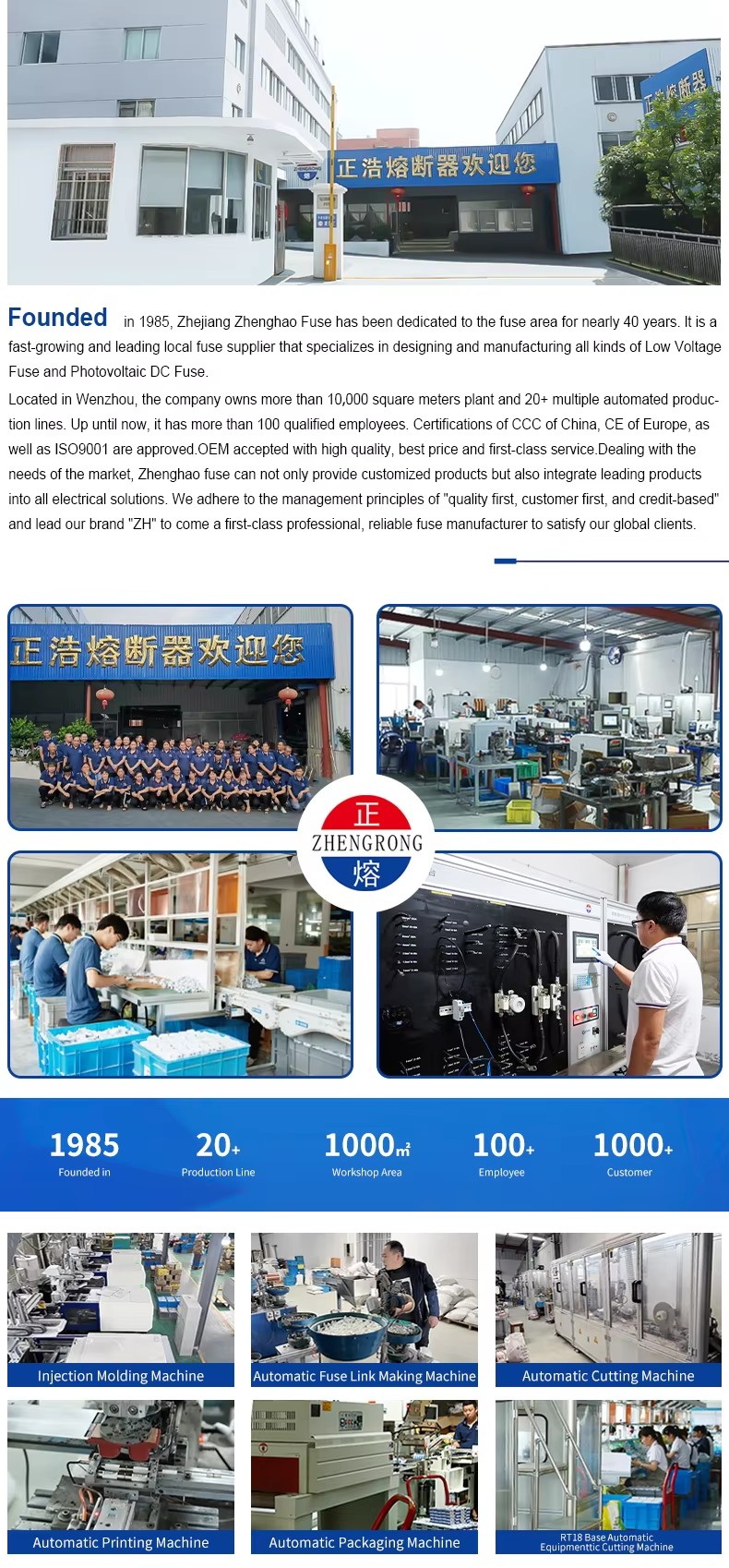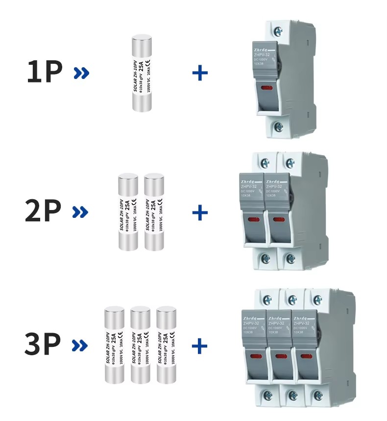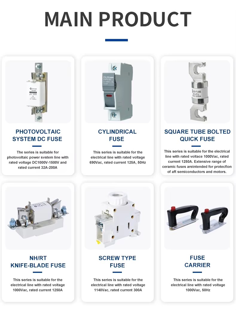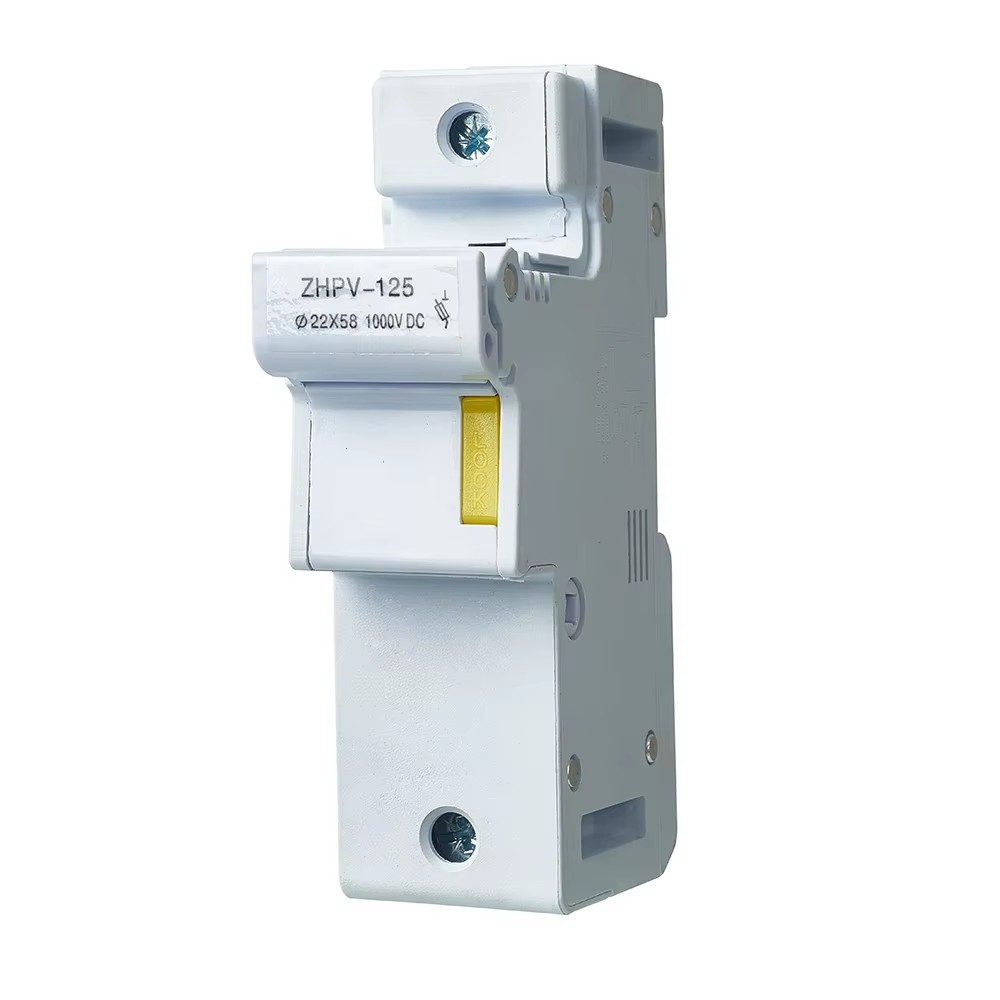 Baintear úsáid as an mbonn fuse 22 × 58 de fhiús fótavoltach de ZHPV-125 1000V Fuse Fuse chun fiúsanna fótavoltacha a shuiteáil i dtrealamh, a úsáidtear de ghnáth i gcórais gréine, le croí-mhéid 22mm × 58mm. Tá an bonn fuse ZHPV-125 1000V DC oiriúnach do chaighdeáin fhótavoltacha caighdeánacha agus is iondúil go ndéantar é as ábhair fhrithsheasmhacha ardteochta, ar féidir leo coinníollacha oibre a sheasamh i dtimpeallachtaí ardteochta. Tá friotaíocht aimsire maith agus friotaíocht creimthe aige, ag cinntiú go bhfuil oibríocht chobhsaí fadtéarmach i dtimpeallachtaí lasmuigh.